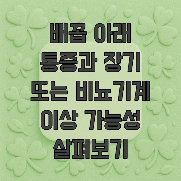 배꼽 아래 통증, 참 애매하죠? 며칠 끙끙 앓다가 괜찮아지기도 하고, 또 갑자기 심해지기도 하니까요. 하지만 우리 몸은 괜히 아프다고 신호를 보내는 게 아니잖아요. 특히 다음과 같은 경우에는 꼭 병원에 가보시길 권해드립니다. 저도 비슷한 경험이 있어서 얼마나 불안한지 잘 알거든요.